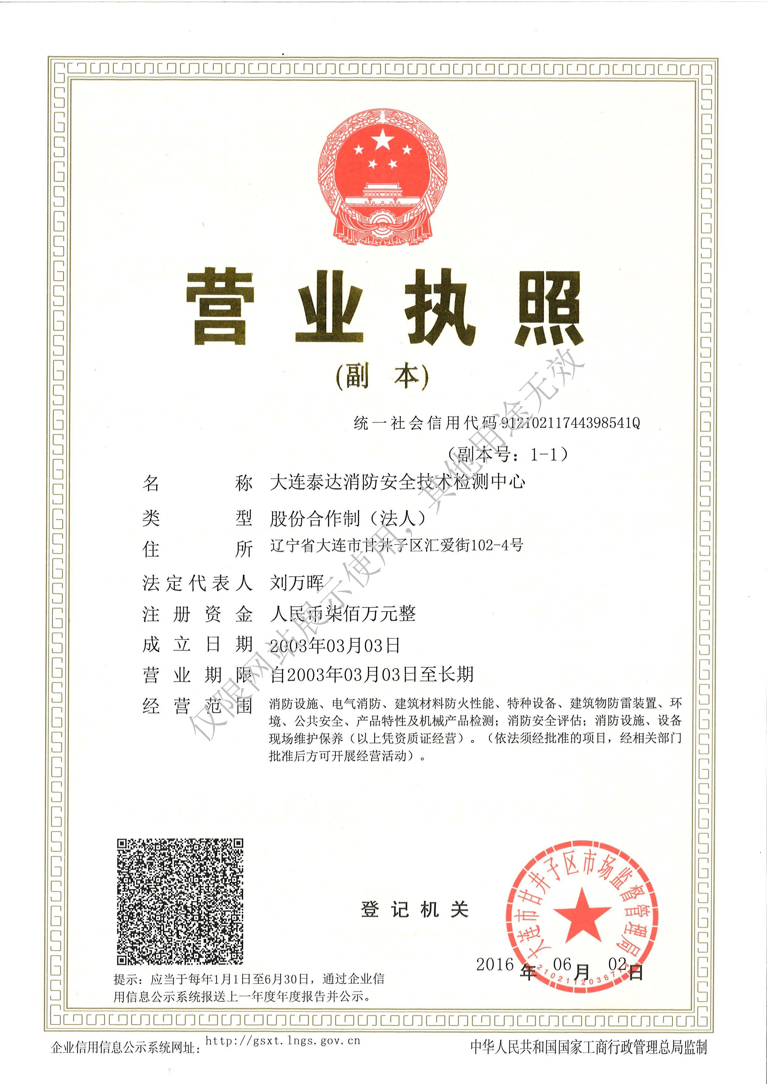 · 是經(jīng)“社會消防技術(shù)服務(wù)信息系統(tǒng)”備案并公示的消防技術(shù)服務(wù)機(jī)構(gòu),已取得中國氣象局頒發(fā)的雷電防護(hù)裝置檢測資質(zhì)證書、遼寧省質(zhì)量技術(shù)監(jiān)督局審核批準(zhǔn)的檢驗(yàn)檢測機(jī)構(gòu)資質(zhì)認(rèn)定證書(CMA)及包括消防檢測、電氣檢測、雷電防護(hù)裝置檢測、防火涂層厚度檢測等在內(nèi)的200余項(xiàng)檢驗(yàn)檢測能力,取得大連市應(yīng)急管理局頒發(fā)的安全生產(chǎn)標(biāo)準(zhǔn)化證書,獲得質(zhì)量管理體系、環(huán)境管理體系、職業(yè)健康安全管理體系認(rèn)證證書,是經(jīng)備案的高新技術(shù)企業(yè),可獨(dú)立出具具有證明作用的檢測報告。